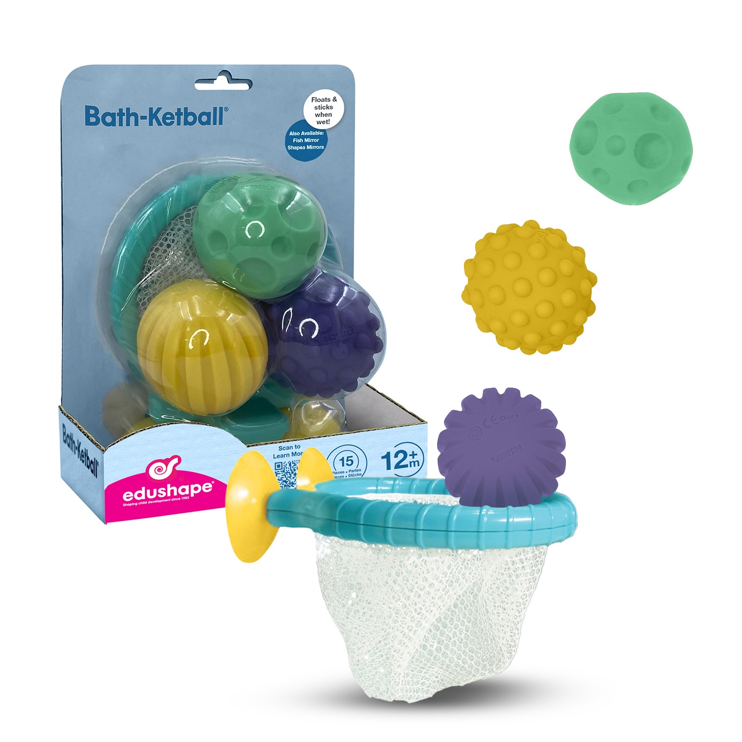 Includes three sensory balls and a netted 'basket' with suction cups.