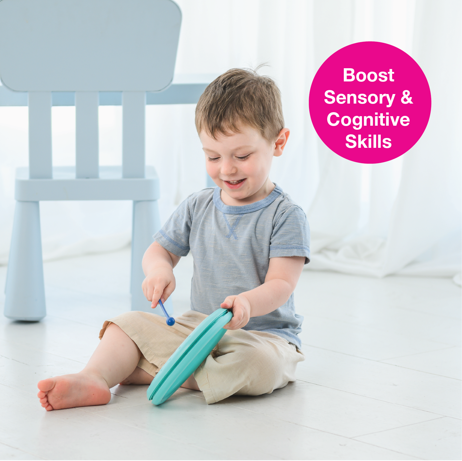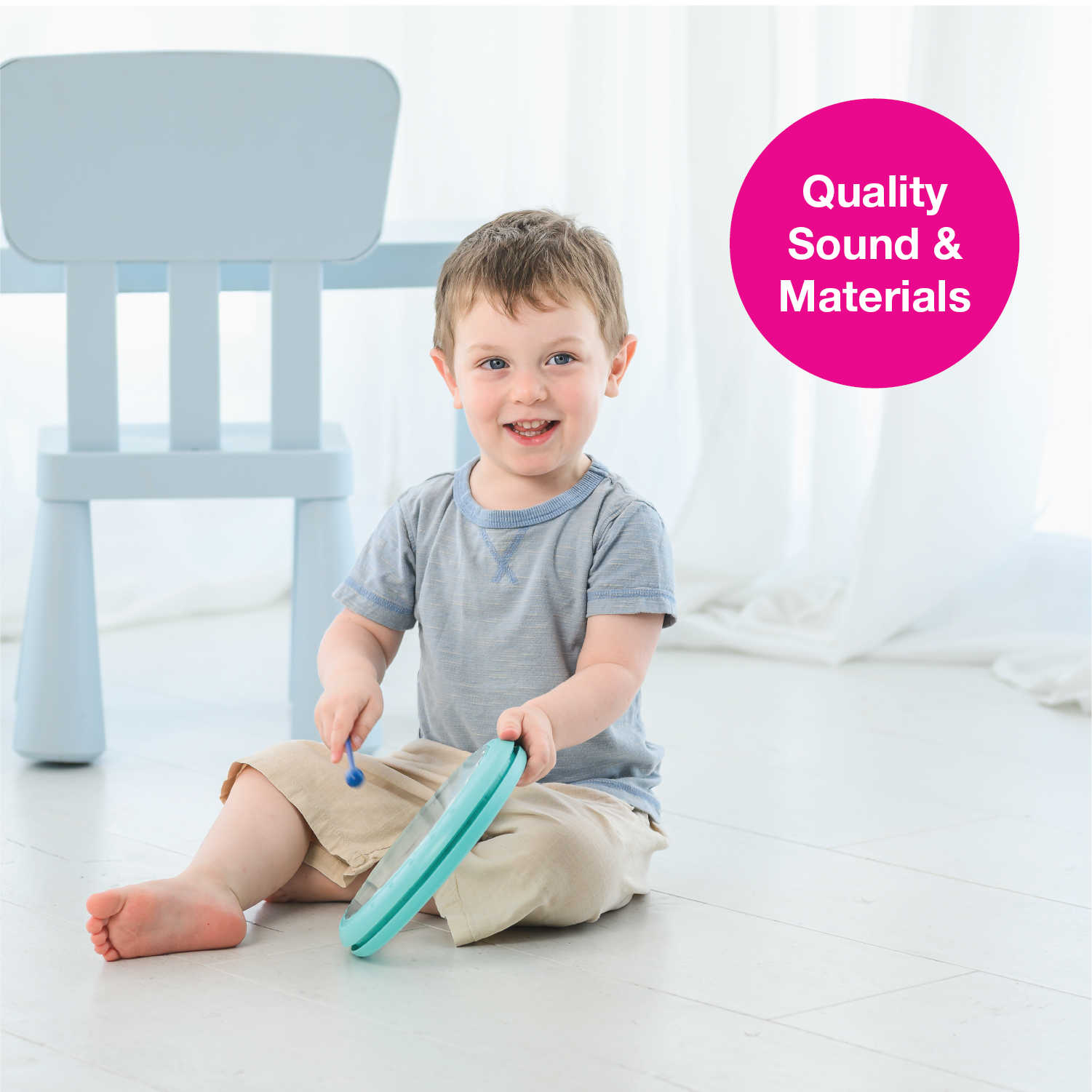 Encourage your child to explore their musical instincts with this Classic Flat Drum! Quality sound, safe materials, and colorful designs make it a universal musical toy that develops senses, fine motor skills, and entertains for hours on end.