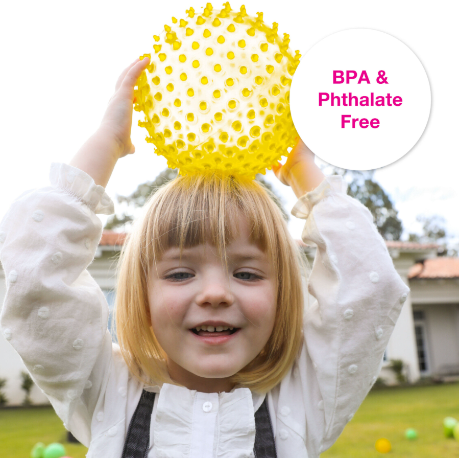 Edushape Sensory Balls are BPA free, bouncy, easy to grip, hold their volume, and can be reinflated.