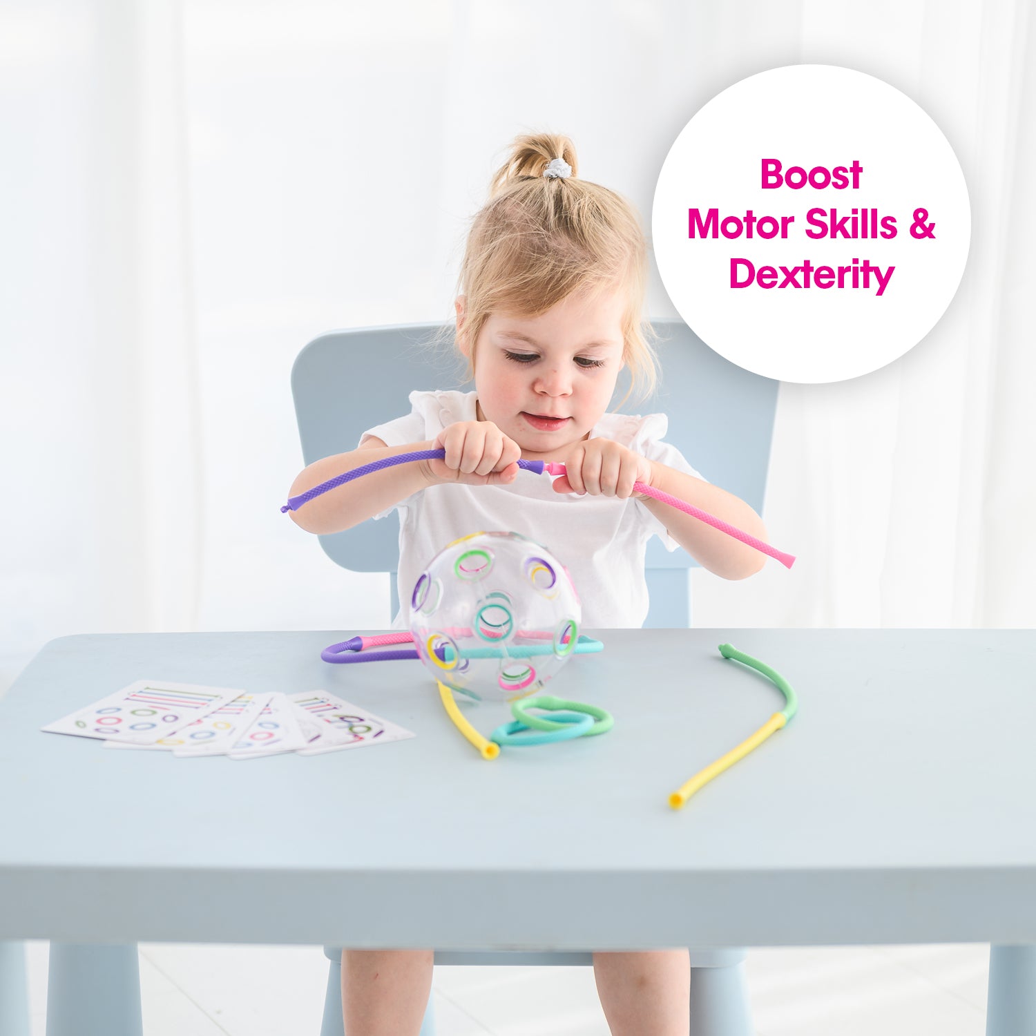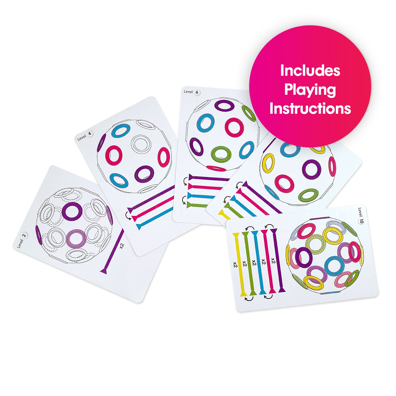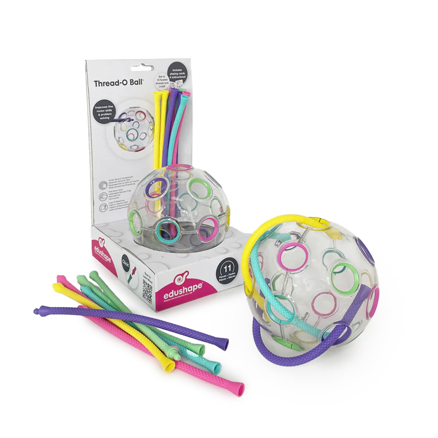 Set of 10 flexible threads and a ball. Includes playing instructions!